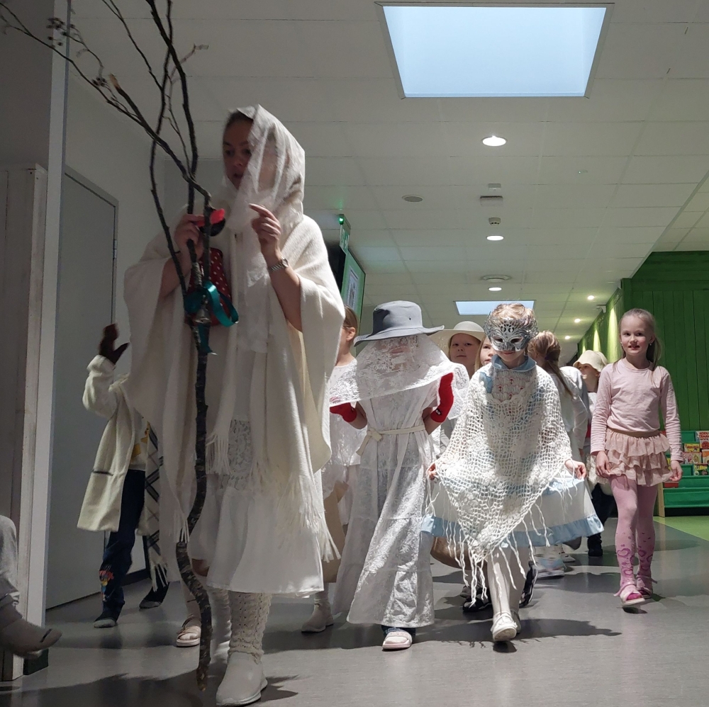 Pildil_kooli_huvijuht_ja_kostumeeritud_opilaneHingedepäeva üritus oktoobri viimasel kuupäeval.